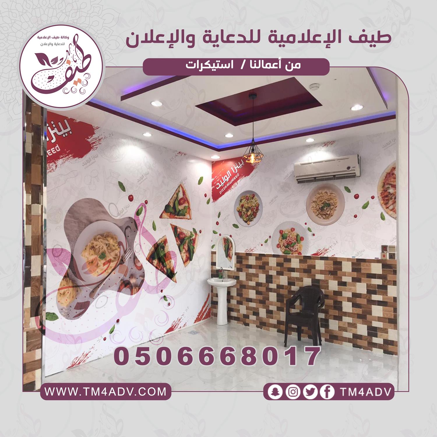تصميم وطباعة وتركيب ستيكرات جدارية للمطاعم