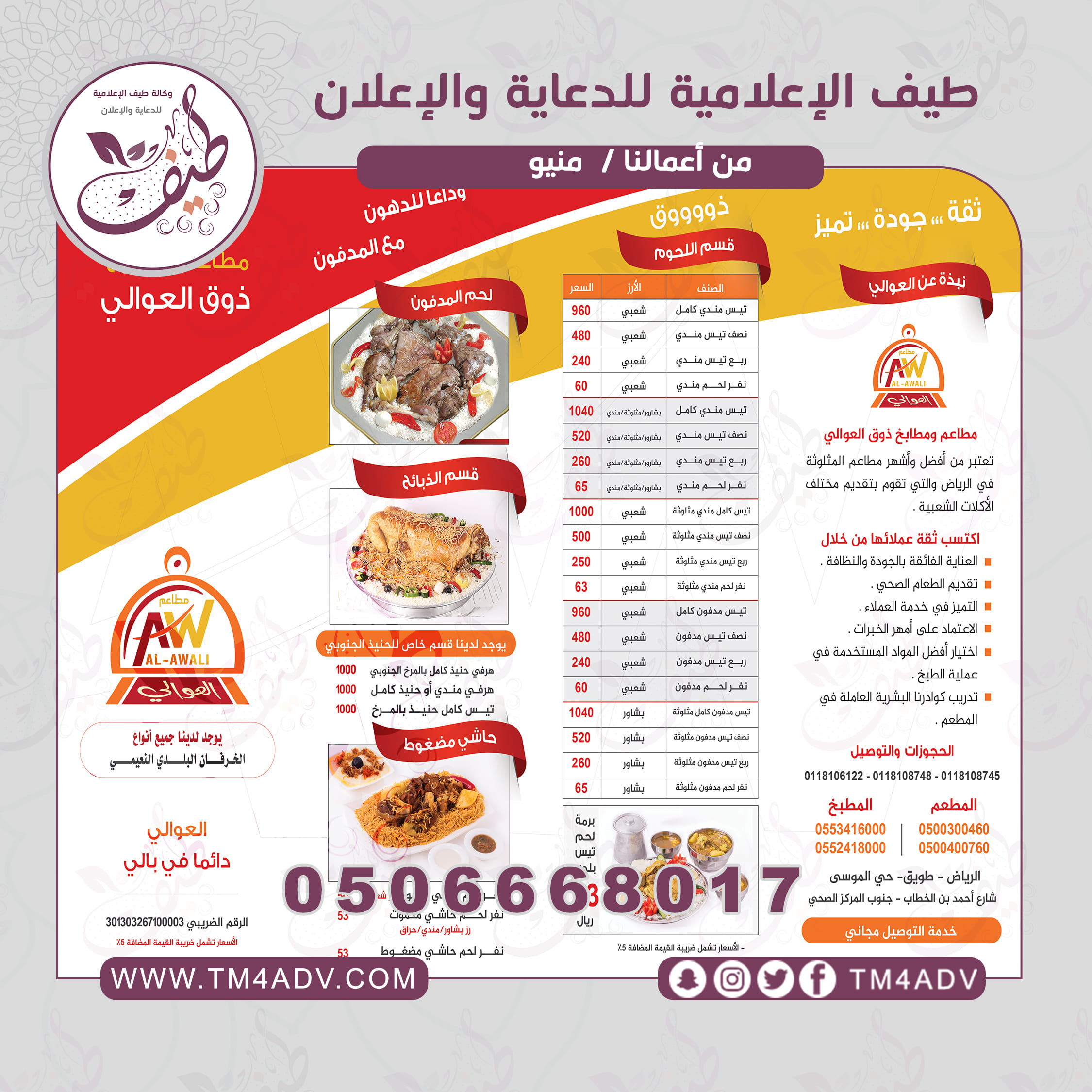منيو مطاعم ذوق العوالي