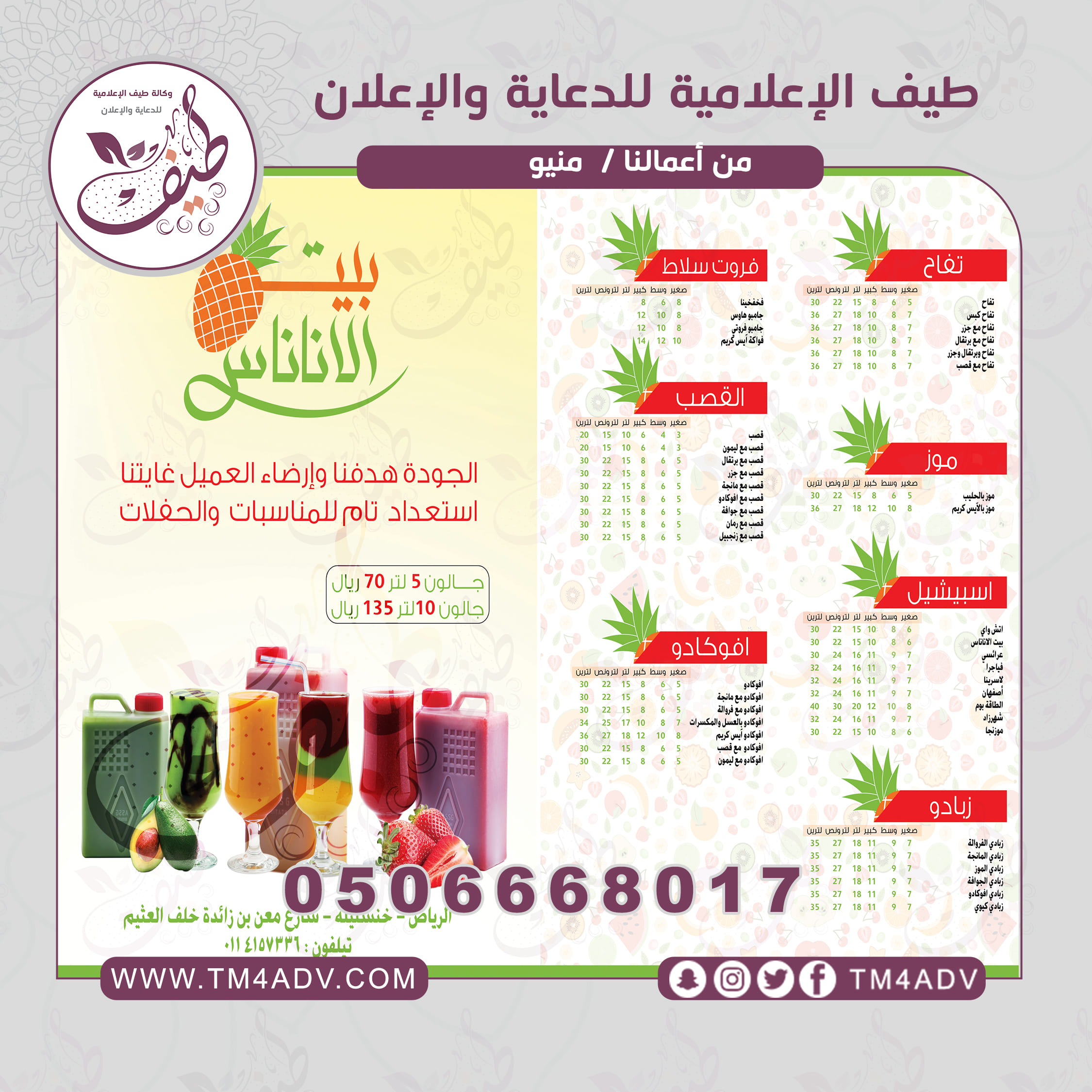 منيو بيت الاناناس